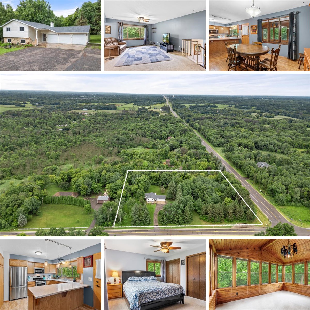 Home is on 3.13 acres with mature trees giving you a gorgeous country living feel. 3 car heated garage attached and 1 car detached. Kitchen has ample storage and counter space with kitchen window. Relax out on the 3 season porch. Take a walk through the backyard on the cut in trails. This is a great place for your peace & quiet desires. Schedule your showing today!